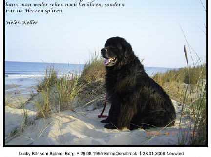 WT 29.08.1995 gestorben 23.01.2006 EIN LEBEN OHNE NEUFUNDLÄNDER IST NICHT VORSTELLBAR,EIN LEBEN OHNE LUCKY HINTERLÄßT EINE LÜCKE.